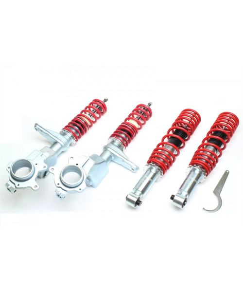 Le rabaissement sur des combinés filetés de qualité, pour le meilleur des tarifs !! TA TECHNIX est une marque Allemande basée à Berlin, spécialiste du tuning et des pièces spécifiques depuis plus de 10ans. GERMAN RULES est un partenaire majeur de TA TECHNIX en France depuis 2011. Fort d’une large gamme de combinés filetés, TA TECHNIX est une des principales marques Européenne de combinés filetés à prix très serrés. Les combinés filetés TA TECHNIX que vous trouverez chez GERMAN RULES sauront vous combler pour une utilisation quotidienne de votre véhicule. En effet, les combinés filetés TA TECHNIX permettent le réglage de la hauteur de caisse grâce aux clés de réglages fournies. Les combinés filetés TA TECHNIX sont garantis 1 an fabricant et sont homologués TÜV (Allemagne). L’exigence est forte chez TA TECHNIX et les combinés filetés sont issus de procédés de fabrication de qualité. Les combinés filetés TA TECHNIX seront le compromis idéal entre budget et efficacité. Combinés filetés TA TECHNIX pour Volkswagen Polo / Derby type 86 / 86C de 1975 à 09/1994 Vendus avec les clés de réglage Garantie 1 an Homologation TÜV Charge avant maxi : 640kg Charge arrière maxi : 640kg Rappel : Les combinés filetés et accessoires de rabaissement modifient la configuration d'origine d'un véhicule et ne sont donc pas homologués pour une utilisation sur la voie publique. Utilisation réservée à un usage privé.